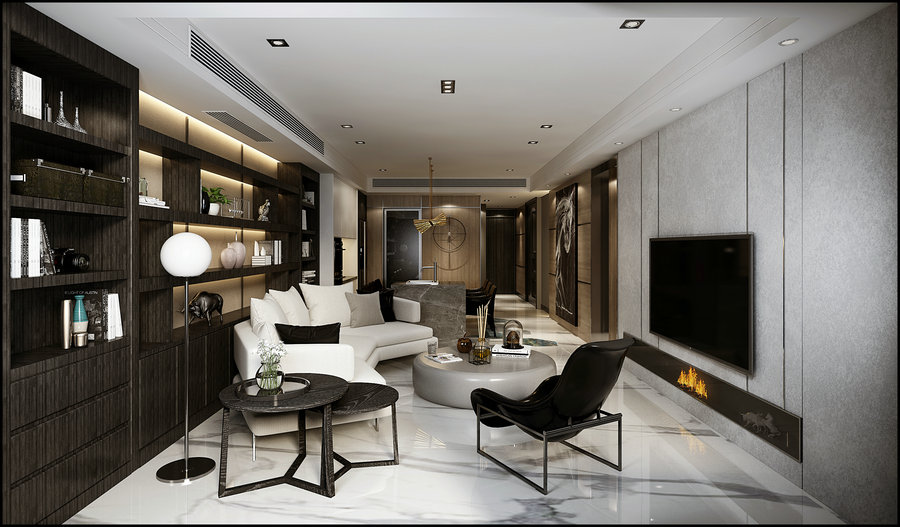 南城都匯167平港式設計裝修客廳