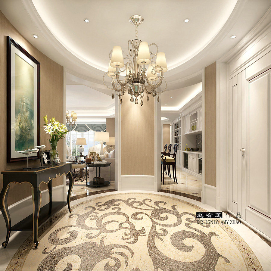 客廳作為待客區域,一般要求簡潔明快,同時裝修較其它空間要更明快光鮮,通常使用大量的石材和木飾面裝飾;反映在裝修上對各種仿古墻地磚、石材的偏愛和對各種仿舊工藝的追求上。多用溫馨柔軟的成套布藝來裝點,同時在軟裝和用色上非常統一。