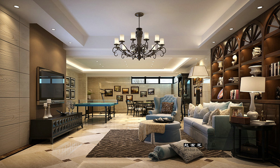 西郡英華280平別墅美式設(shè)計裝修休閑廳
