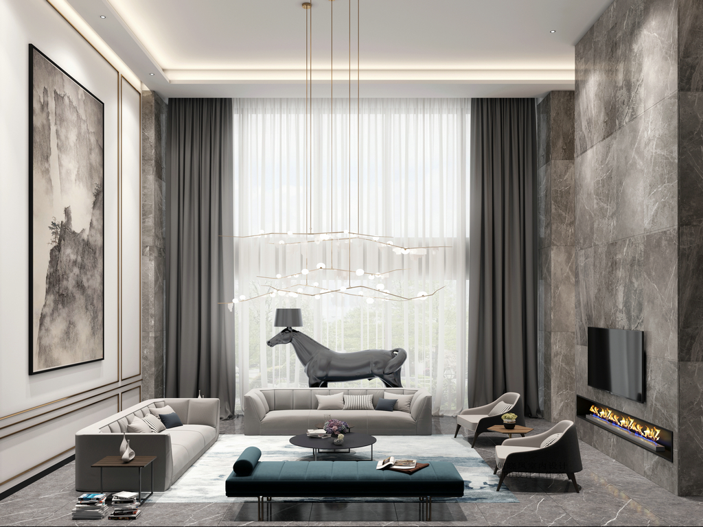山水峨眉1400平大別墅裝修設(shè)計(jì)起居