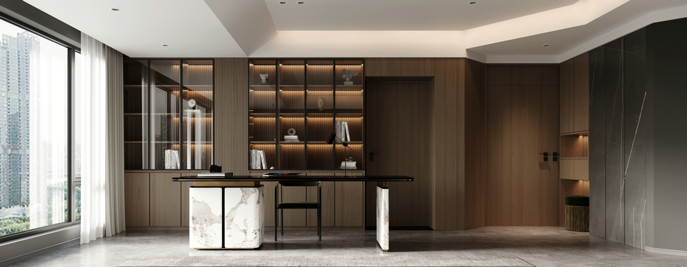 金科博翠天辰是成都魯班裝飾公司鄭瑋老師設(shè)計(jì)作品,設(shè)計(jì)面積171平方,這套案例屬于異地設(shè)計(jì)方案,在設(shè)計(jì)之初我們進(jìn)行了充分的溝通,對(duì)戶型進(jìn)行了分析和改造,采用當(dāng)下流行的意式輕奢作為設(shè)計(jì)方向,墻面采用深灰色和咖色進(jìn)行搭配,燈光進(jìn)行了氛圍光的設(shè)計(jì)。