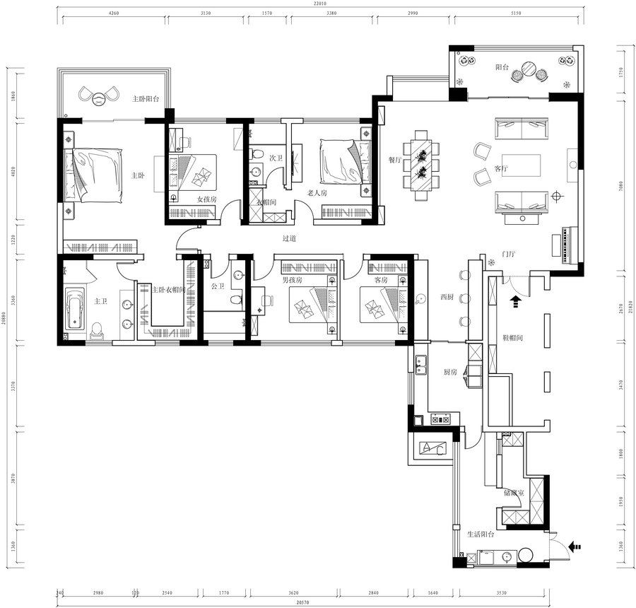 中洲·中央城邦260平現代大平層裝修設計老人房
