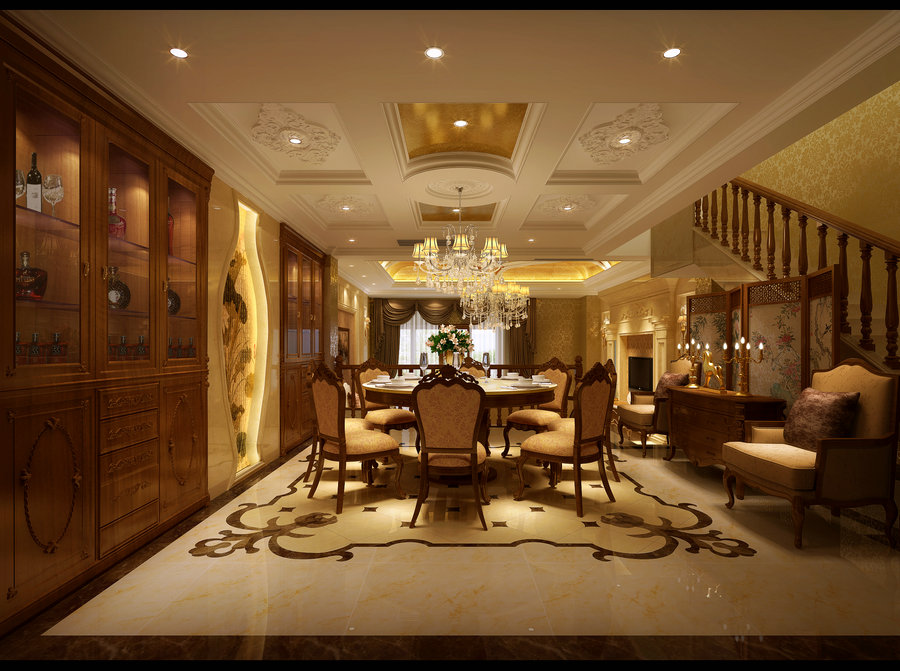 蜀郡370平混搭別墅裝飾設計餐廳