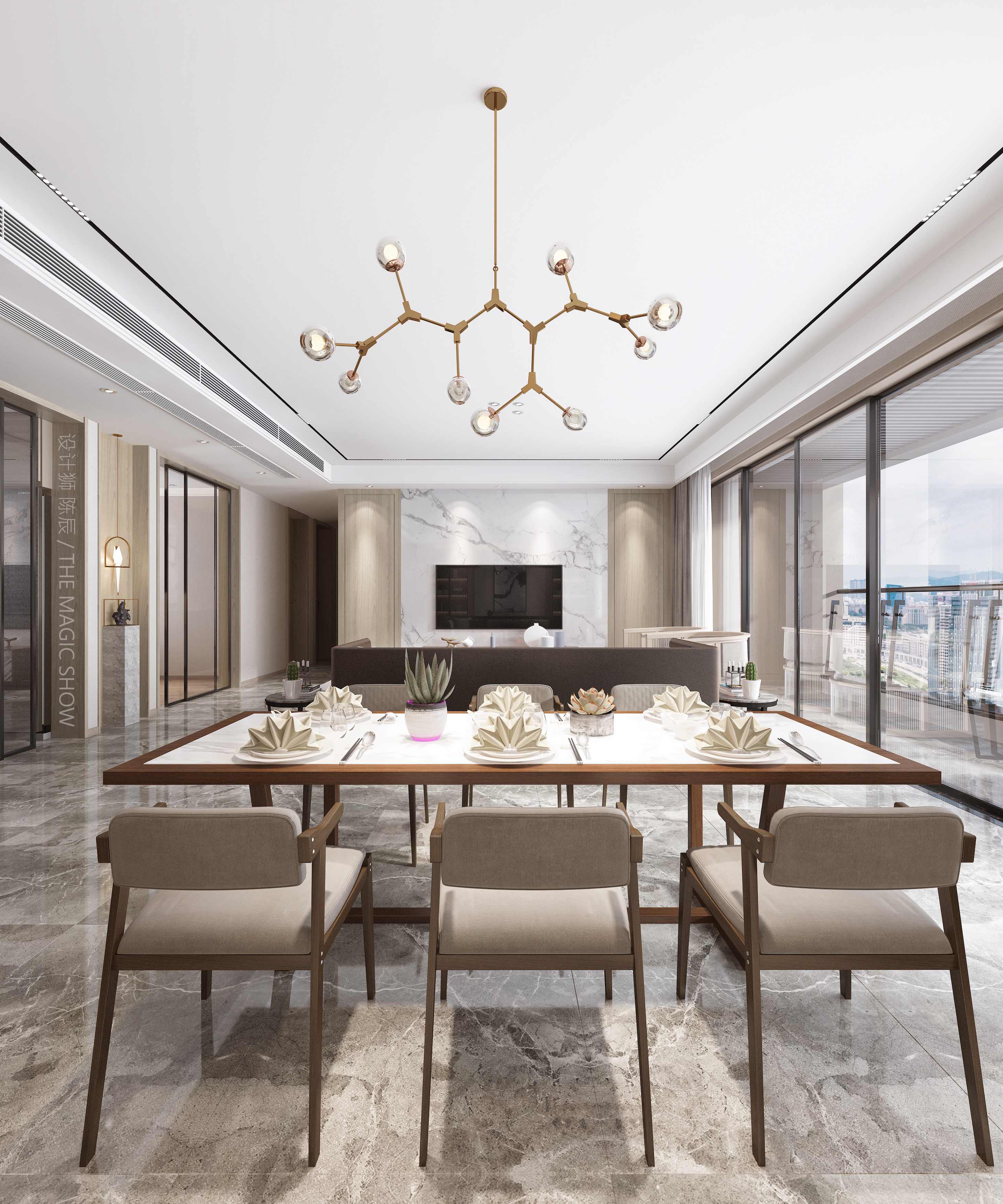 蔚藍卡地亞花園城175平方米 四室兩廳 現代中式客廳