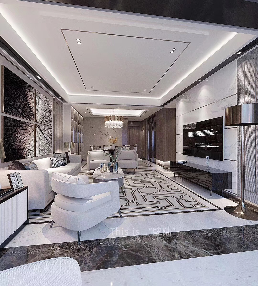 金沙城150平套三港式輕奢客廳1