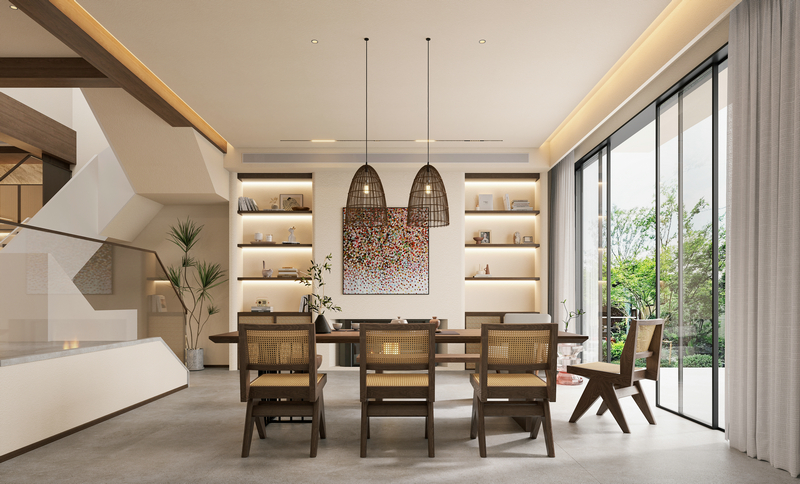月映長灘300平別墅設計|自然詫寂廚房餐區