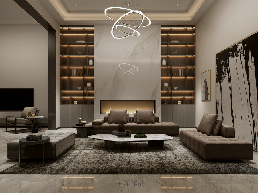 朗詩南門綠郡565平現(xiàn)代別墅設(shè)計(jì)裝修客廳
