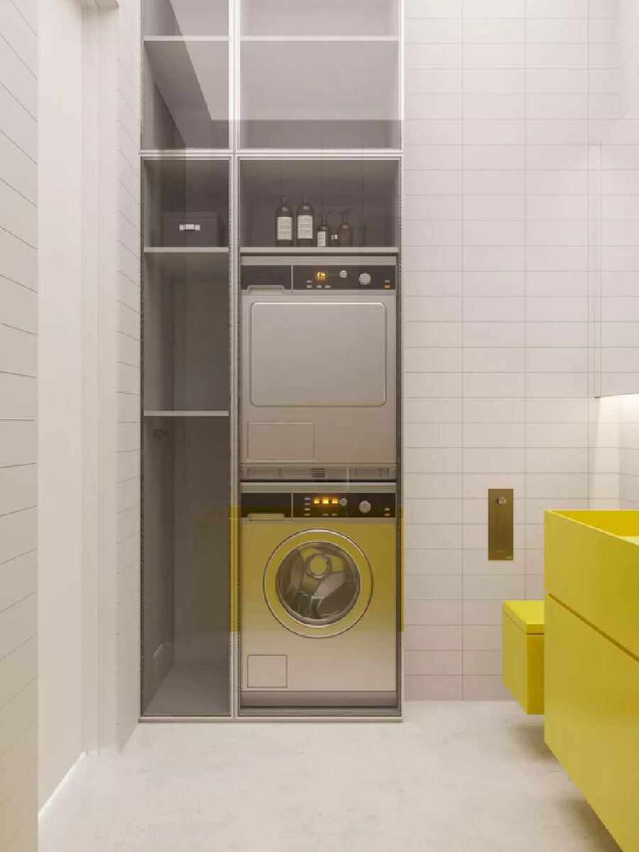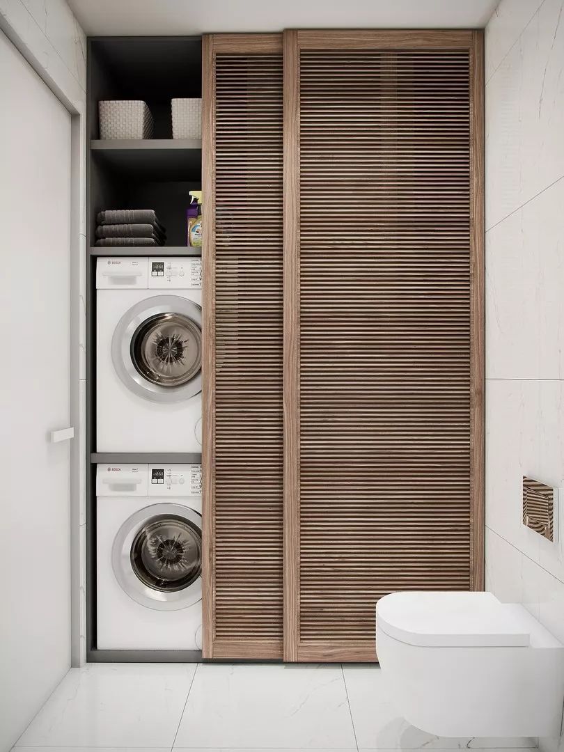 洗衣機還可以和收納柜單獨放在一起,或在拐角處安置洗衣機