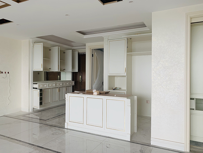 成都魯班裝飾公司蔚藍卡地亞花園城210平大平層裝修施工工地現場照片,硬裝完工,等待軟裝進場。