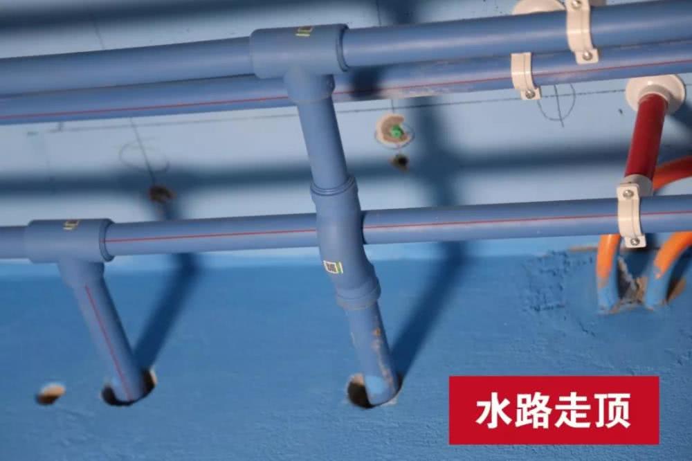 廚房、衛生間水、電路必須走頂。水管交叉時需使用專業彎頭做過橋處理,這樣能避免水管震顫磨損,減少后期維修麻煩。